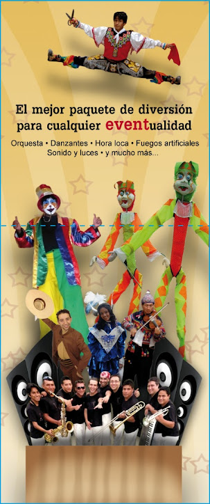 Se encargan del Fin de Fiesta, con el espectáculo llamado LA HORA LOCA, y tienen a su cargo animar al público al final del evento, entregando a todos los asistentes globos, serpentinas, y material diverso para fiestas, y dirigiendo a los invitados con coreografías coordinadas entre los diversos personajes que propongo mas adelante. Son artistas con experiencia en el ámbito circense que vendrán ataviados con vestuarios multicolores.